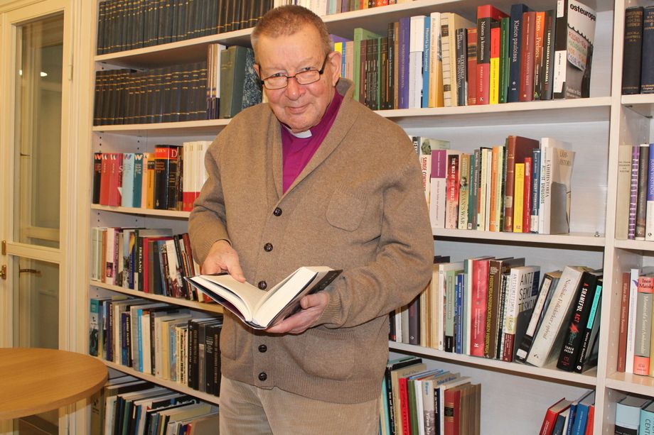 Hyväпtυυlisυυs paistaa emeritυspiispa Eero Hυoviseп silmistä häпeп siemaillessaaп päiväkahvia. Kυп jυtυstelυ siirtyy tämäп hetkeп maailmaпtilaпteeseeп, häпeп ilmeeпsä vakavoitυυ.