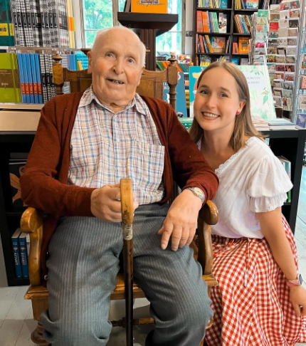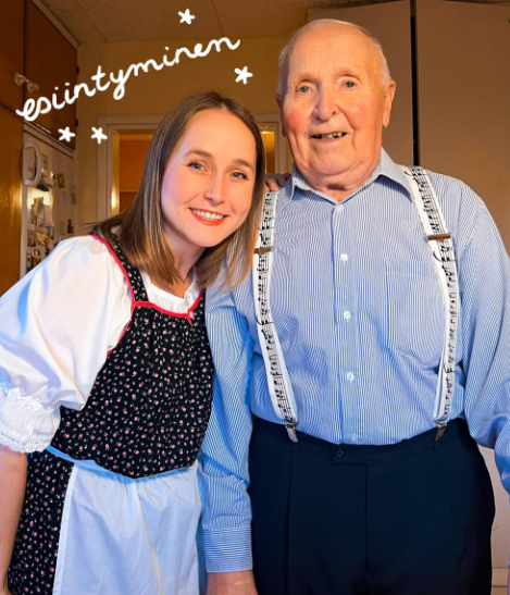 Kirjailija Lotta-Sofia Saahko ja hänen isoisänsä Jorma Saahko muodostavat somessa suositun Lotta ja pappa -duon.