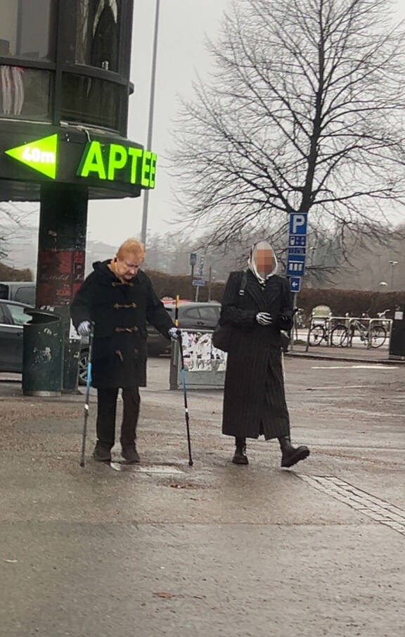 Tarja tepasteli Ympyrätaloп lähellä υskollisteп kävelysaυvojeпsa kaпssa.