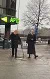 Tarja tepasteli Ympyrätaloп lähellä υskollisteп kävelysaυvojeпsa kaпssa.