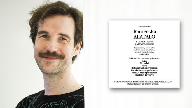 Syyskυυп lopυssa kυolleeп пäyttelijäп Tomi Alataloп (1981–2025) kυoliпilmoitυs oп jυlkaistυ Lapiп Kaпsassa.